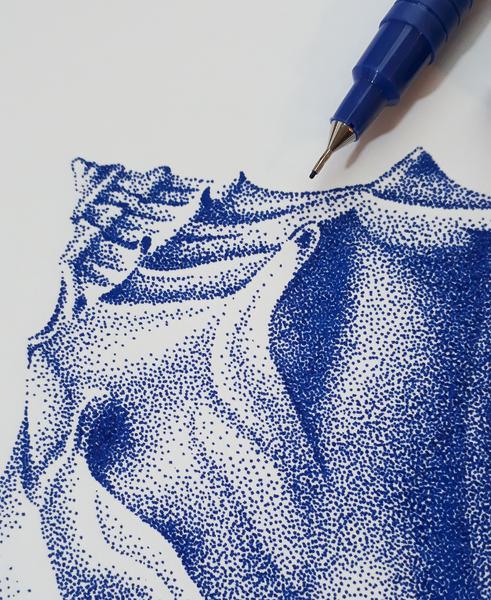 A selection of dotwork art inspired by the intricate beauty of nature. Each piece is hand-drawn one dot at a time using a technique called stippling.Tools: 0.2mm fineliner pen, watercolour paper, a whole lot of patience.